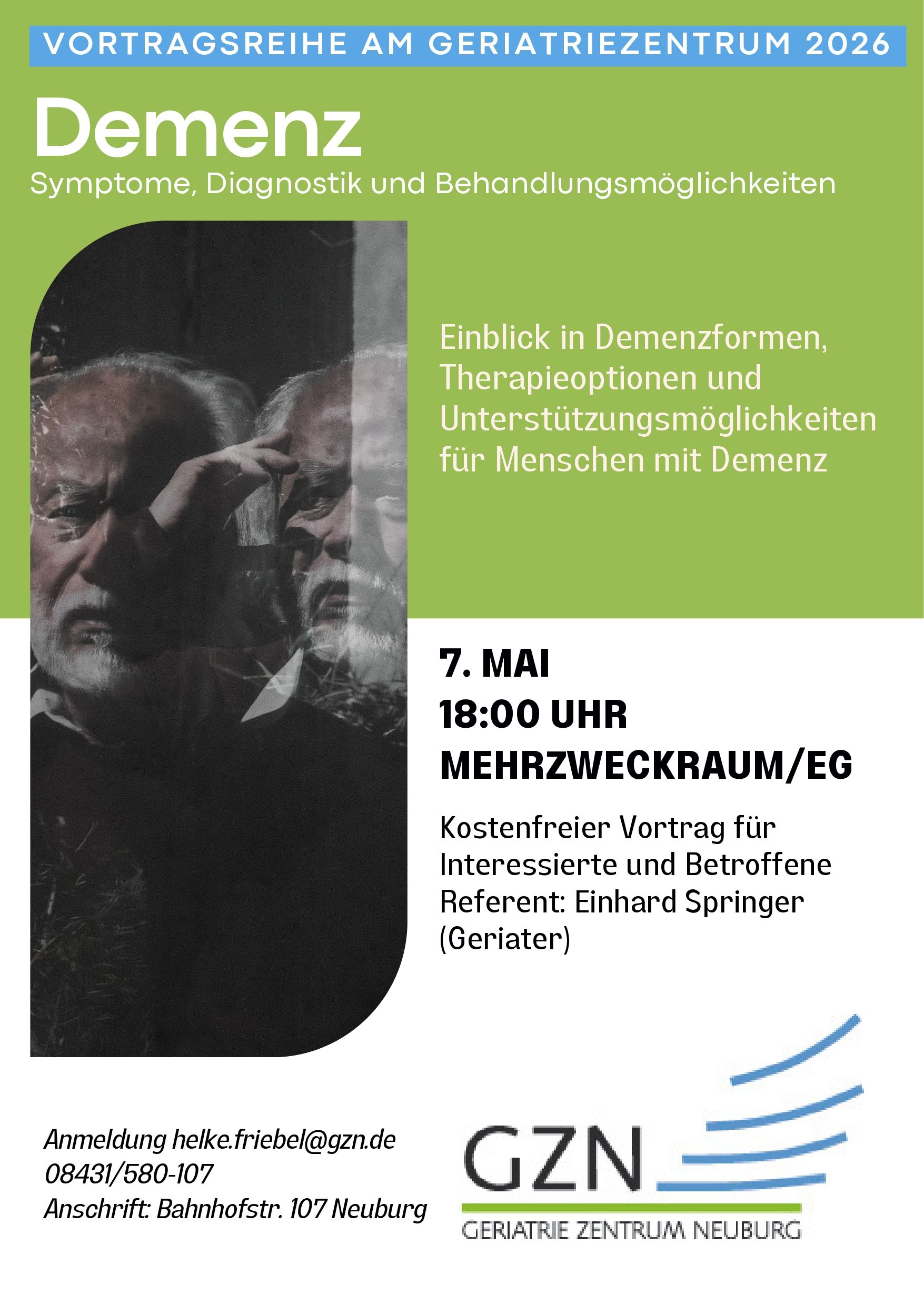 Am 02. Dezember 2025 lädt das Geriatriezentrum Neuburg zu einem informativen Vortrag über Demenz ein. Der Facharzt für Innere Medizin, Geriatrie, Physikalische Therapie und Notfallmedizin, Herr Einhard C. Springer, gibt wertvolle Einblicke in verschiedene Demenzformen, deren Symptomatik, die Diagnostik und moderne Behandlungsmöglichkeiten.