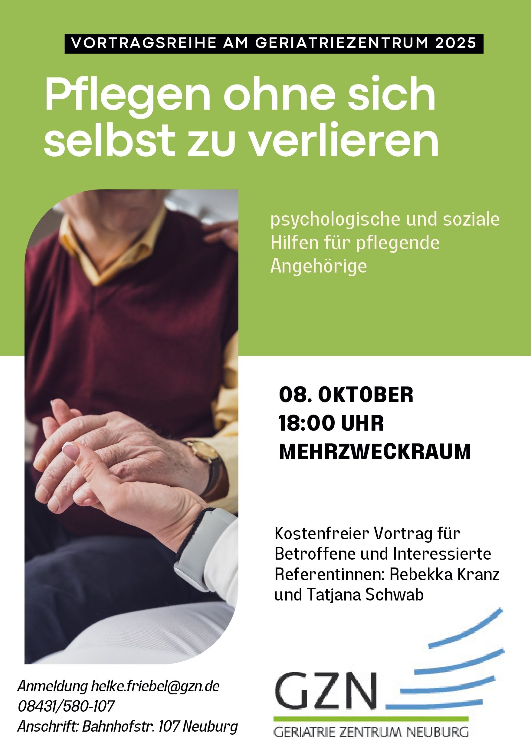 Kostenfreier Vortrag für Betroffene und Interessierte am 08. Oktober um 18 Uhr im Mehrzweckraum des Geriatriezentrums Neuburg.